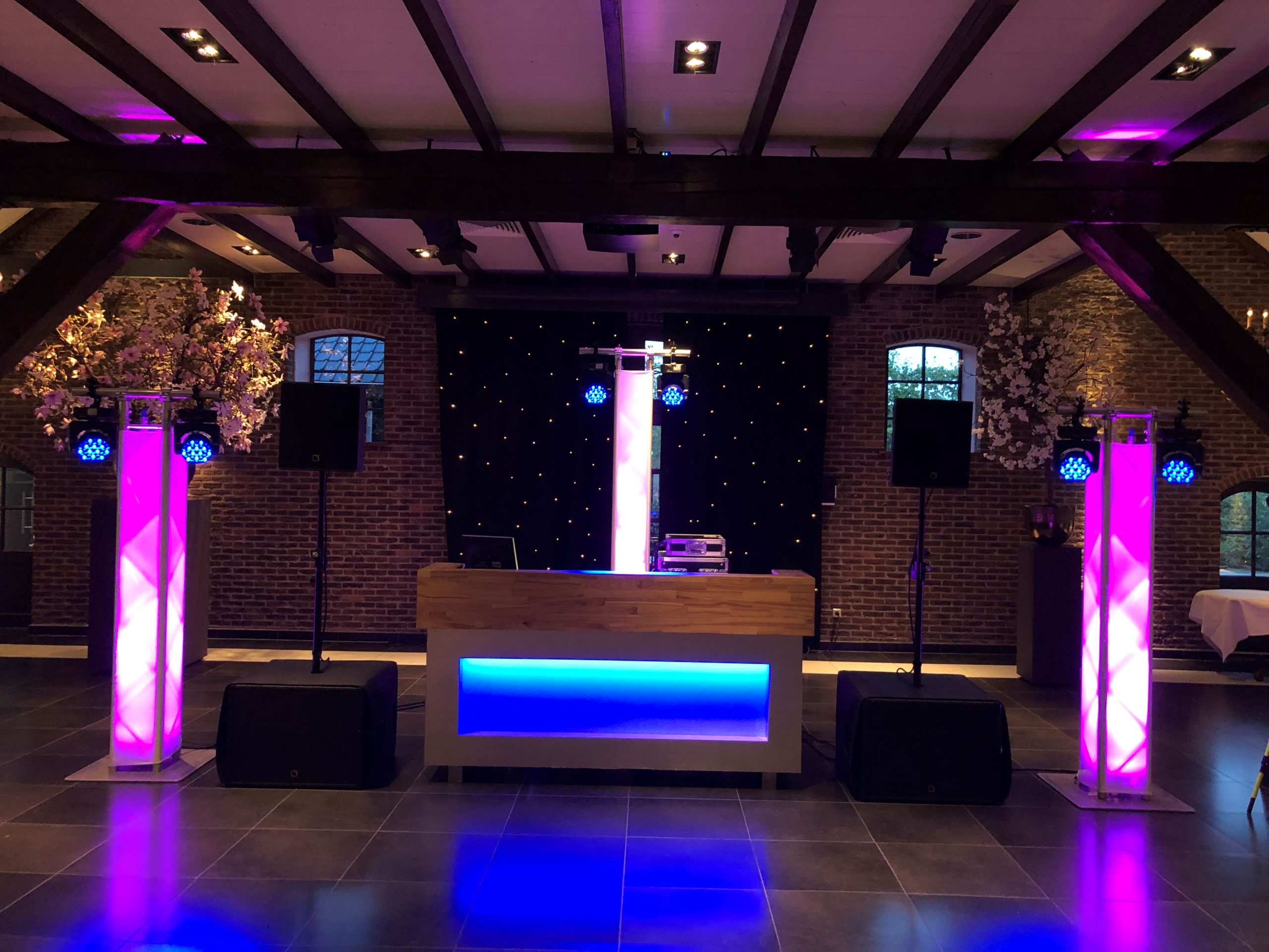 Heeft u zelf een DJ geregeld? Geen probleem. Wij verzorgen de complete technische ondersteuning: professioneel geluid, sfeervolle verlichting en een zorgeloze op- en afbouw. Alles wordt afgestemd op de locatie en de DJ, zodat het feest technisch perfect verloopt. U regelt de muziek, wij regelen de techniek.